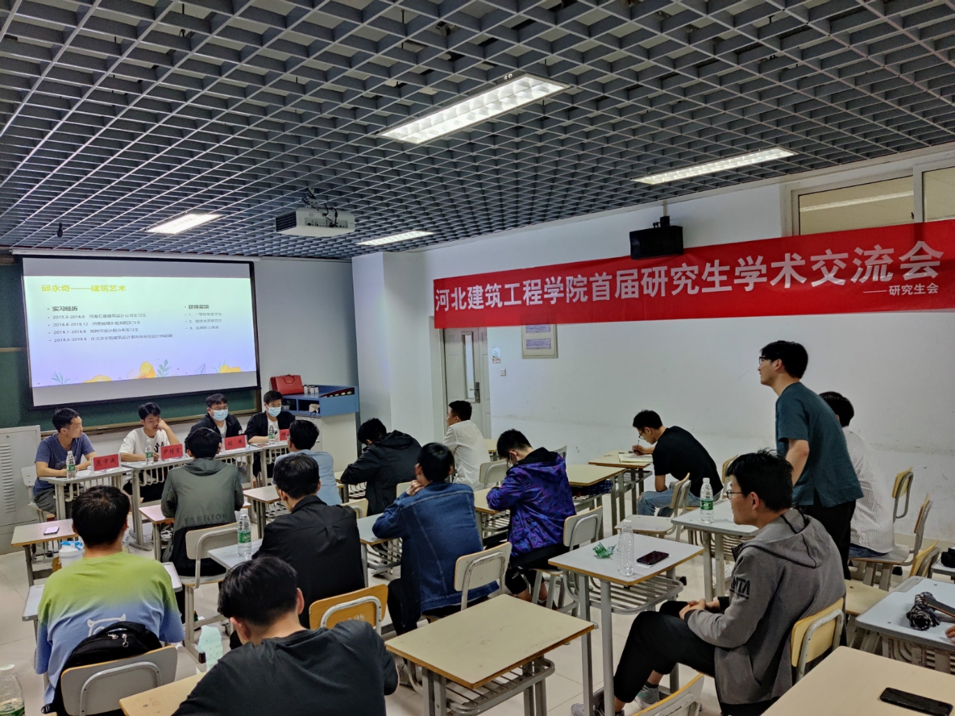 2021年5月22日晚七点,河北建筑工程研究学院首届研究生交流会在主教201成功举办了。本次活动,我们邀请了范宇成、刘杰、邱永奇三位优秀学长,以聊天/问答形式向来自各专业研究生同学做了一次学术经验分享。