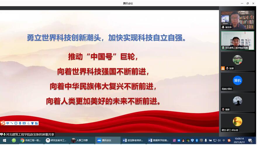 2021年8月9日上午,365英国上市官方网站邀请张家口市委讲师团成员、我校社科部赵宝新教授为全校研究生在线讲授了主题为“弘扬伟大建党精神助力科技自主自强”的开学第一课。各院系共计300余人参会。