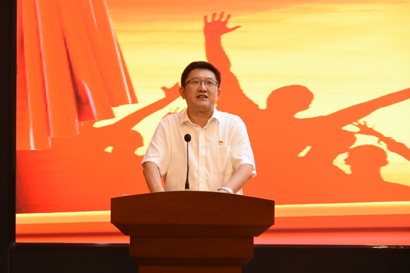 理学院院长杨海军教授代表全体研究生导师发言,他表示愿意做学生的良师益友,在未来三年共同和学生一起恪守学术道德、筑牢科研基础、潜心科研创新,为把学生真正培养成为新时代中国特色社会主义事业合格建设者和可靠接班人而不懈努力。